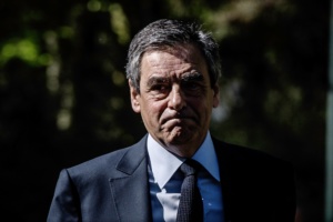 FRANCE ELECTIONS FILLON:Paris (France), 09/04/2017.- ‘Les Republicains’ Right-wing party candidate for the 2017 French presidential elections, Francois Fillon (C) arrives for a family picture with the candidates for the 2017 legislatives elections prior to a campaign rally in Paris, France, 09 April 2017. Legislatives vote will follow the presidential election on 01 and 18 June 2017. (Elecciones, Francia) EFE/EPA/CHRISTOPHE PETIT TESSON [Photo via MaxPPP]